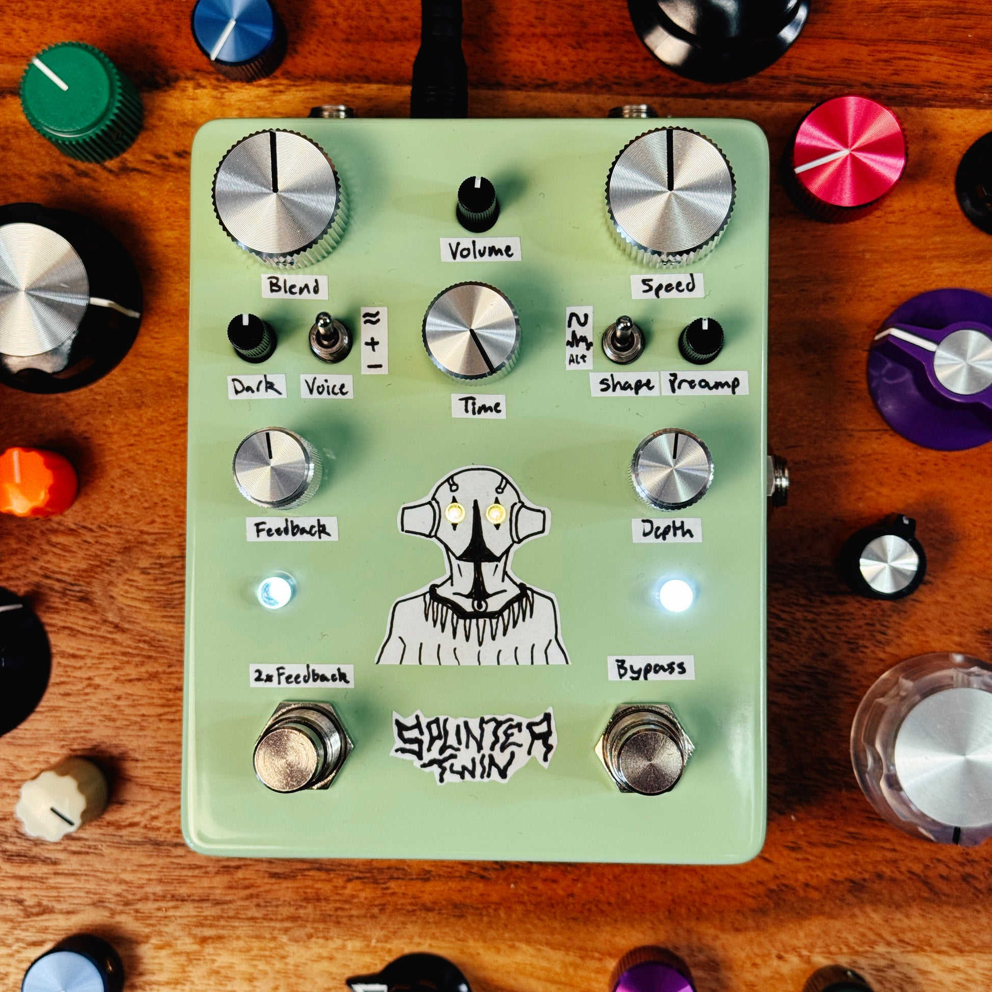 The Splinter Twin Time Modulator is your sonic familiar. It clones your signal, alters that clone in time, pitch, texture, phase and feedback, and then re-combines the altered clone with your original signal to create something altogether new.